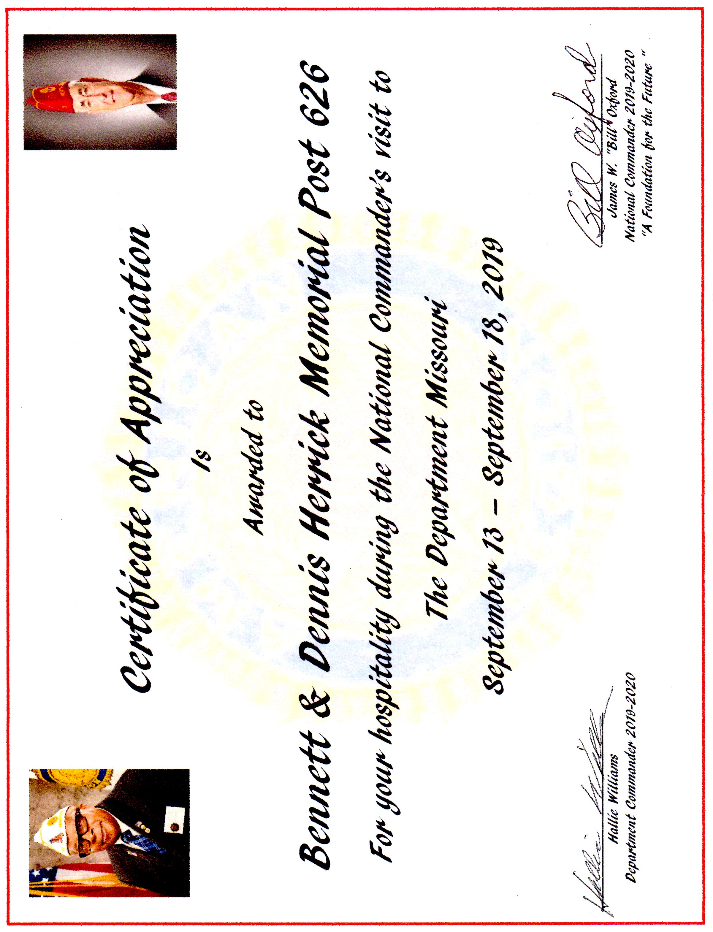 National Commanders visit Gladstone Post 626 2019